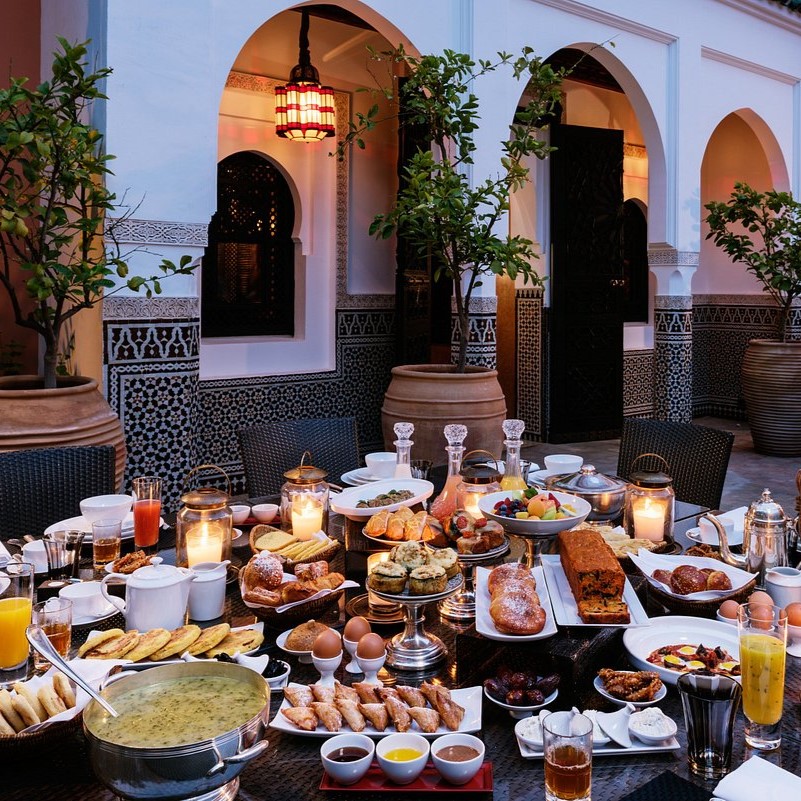 La rénovation a été pensée pour créer un espace où chaque détail raconte une partie de l’histoire et de la culture marocaine. Que ce soit le choix des matériaux, les motifs des textiles, ou l’agencement des espaces, tout a été conçu pour offrir à nos clients une expérience immersive. En plus de l’atmosphère visuelle, nous avons également travaillé sur l’ambiance sonore et olfactive, avec de la musique traditionnelle en fond et des parfums d’épices qui rappellent les souks marocains. Cette nouvelle déco invite nos clients à un voyage sensoriel où la magie du Maroc est présente à chaque coin du restaurant.